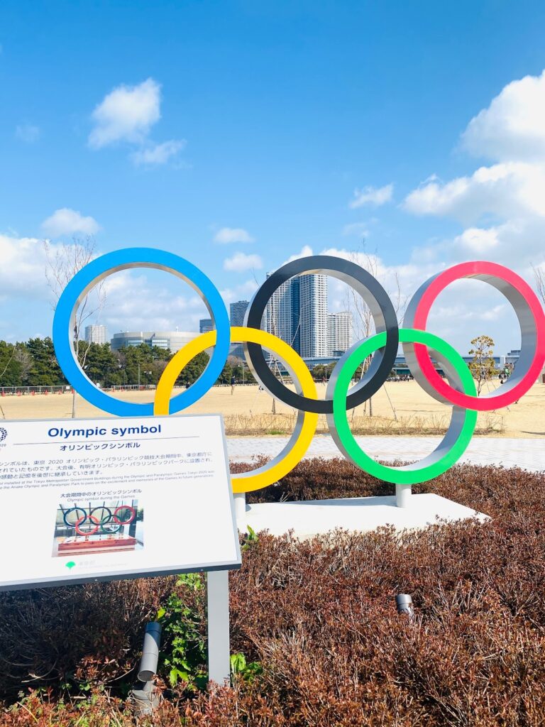 入り口付近では、東京オリンピックで実際に使われたシンボルがお出迎えしてくれます。記念撮影スポットとしてもバッチリ。