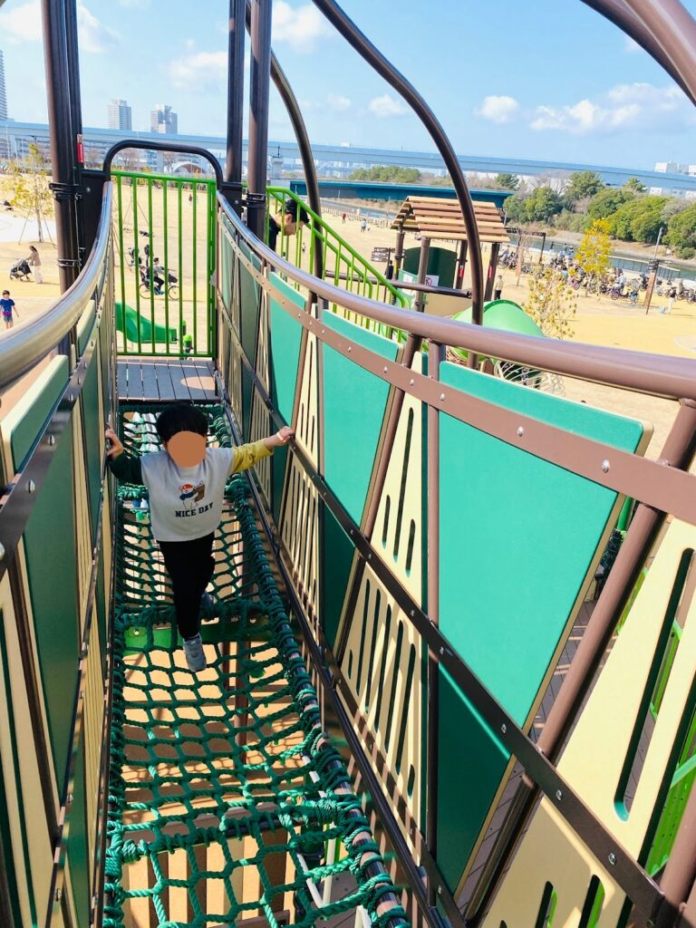 高い位置にあるネットの通路は、3歳の娘は最初は怖がっていましたが、慣れてしまえば「へっちゃらだよ!」と得意げに渡っていました。