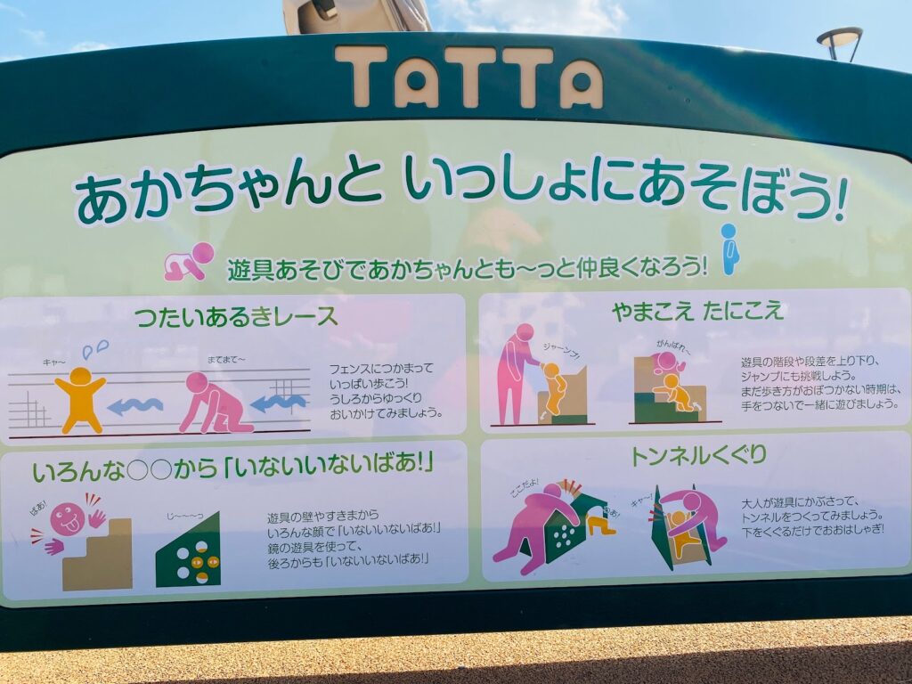 大きな子が走り回っているとぶつからないか心配…というパパ・ママも安心してください!複合遊具の近くにはしっかり区切られた「3歳までの子供専用エリア:TATTA」もあります。