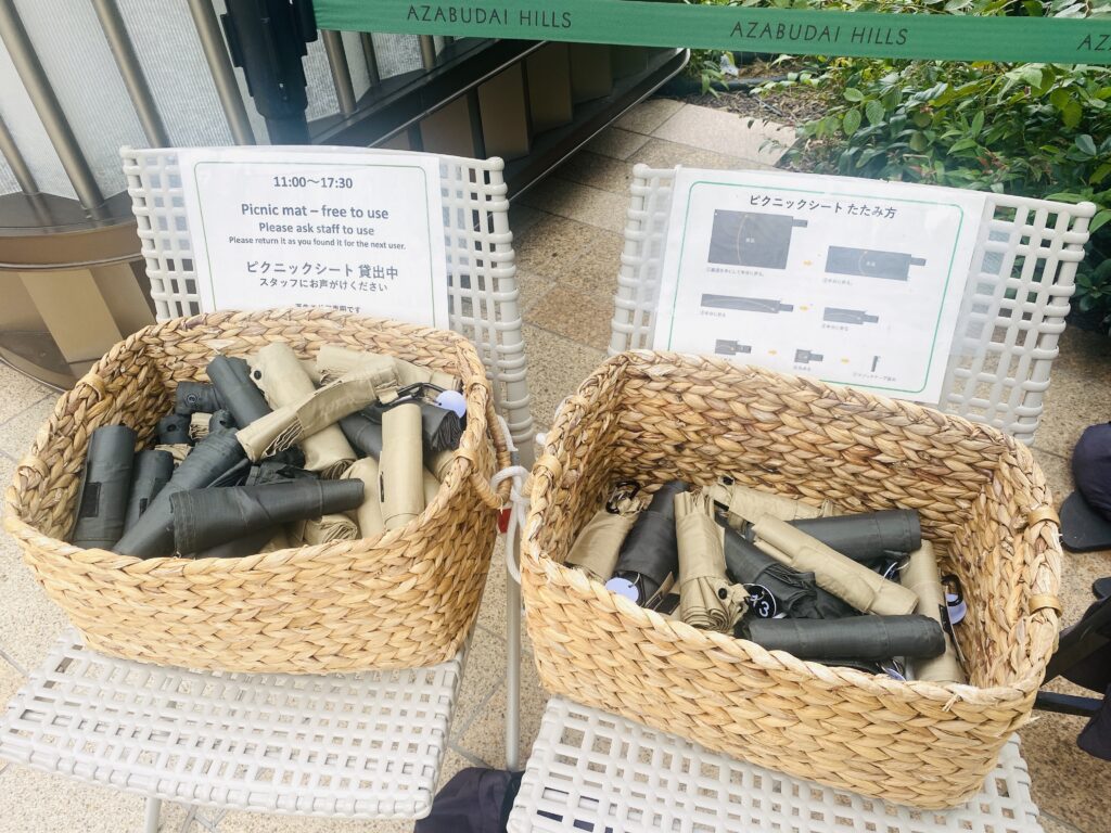 中央広場ではピクニックシートの無料貸し出しサービスもあります。