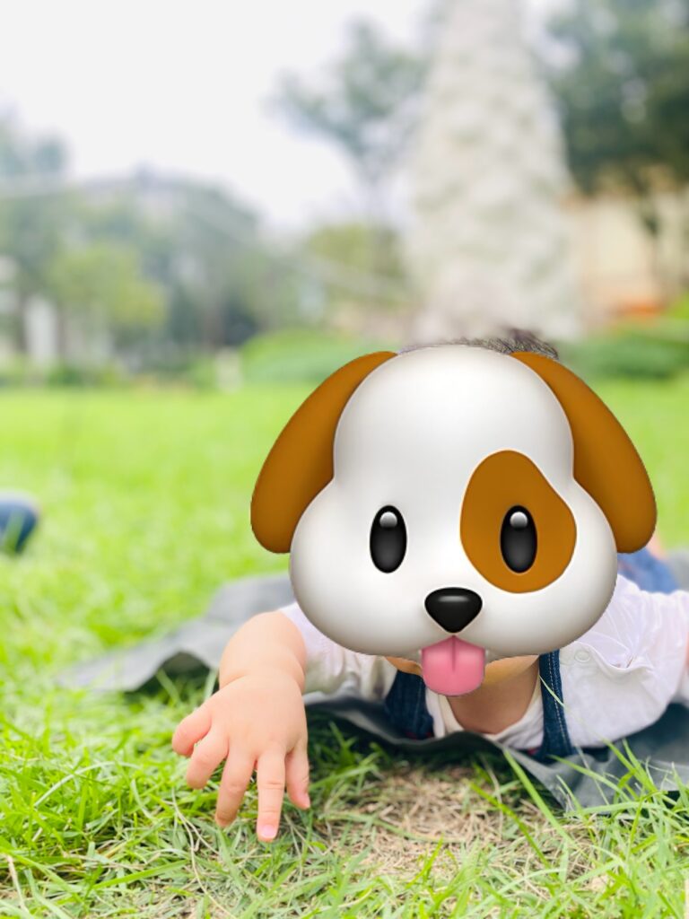 0歳の次女は芝生の感触が気になるのか、しばらく芝を観察したり、摘んで感触を味わっていました。