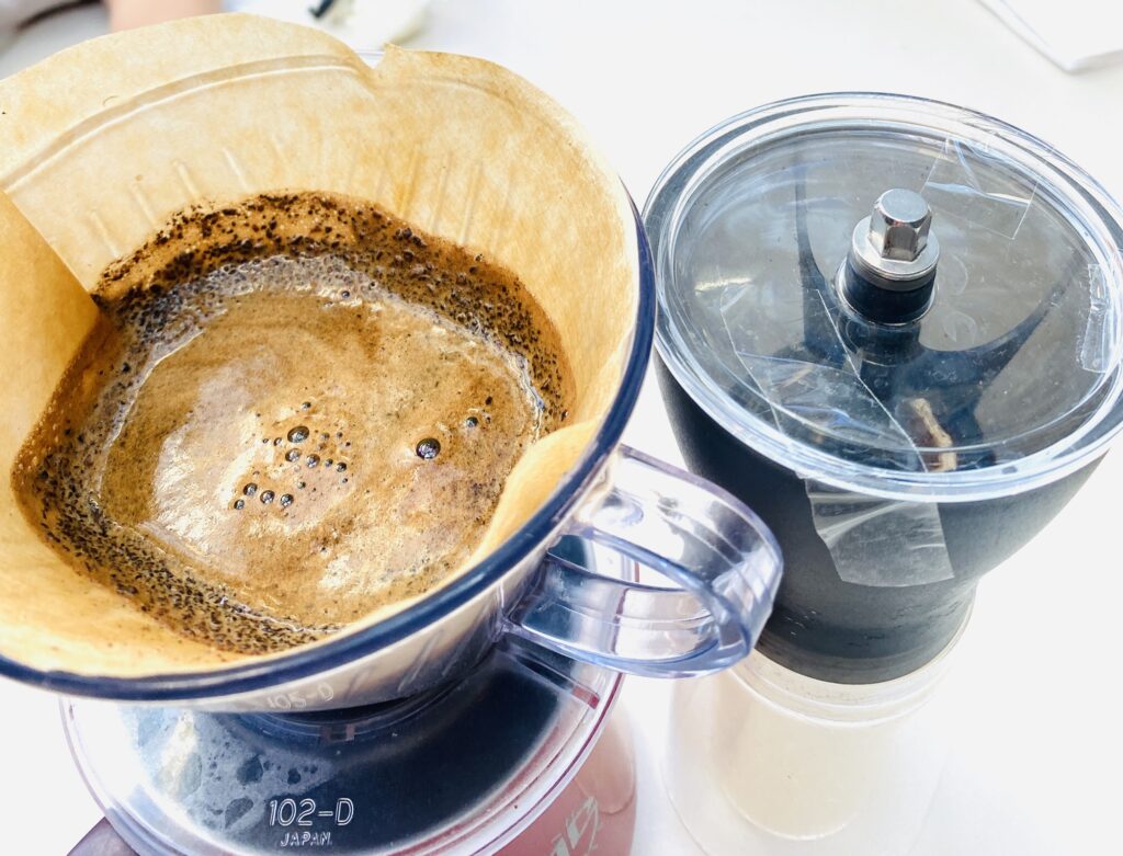 コーヒーミルとドリッパーで挽きたてコーヒー