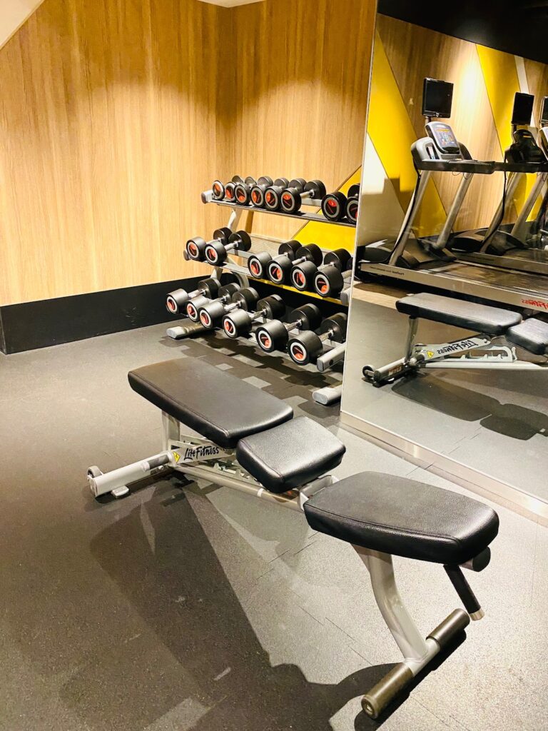 こじんまりしていますが、有酸素系のマシン、ダンベル、ヨガマット、バランスボール、ウォーターサーバー完備で清潔感も抜群です。