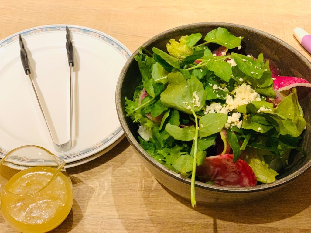 - レストランのリアルなコスパ! 無料でついてくる前菜や子供用のご飯など、アラカルト注文で利用したディナーの様子
