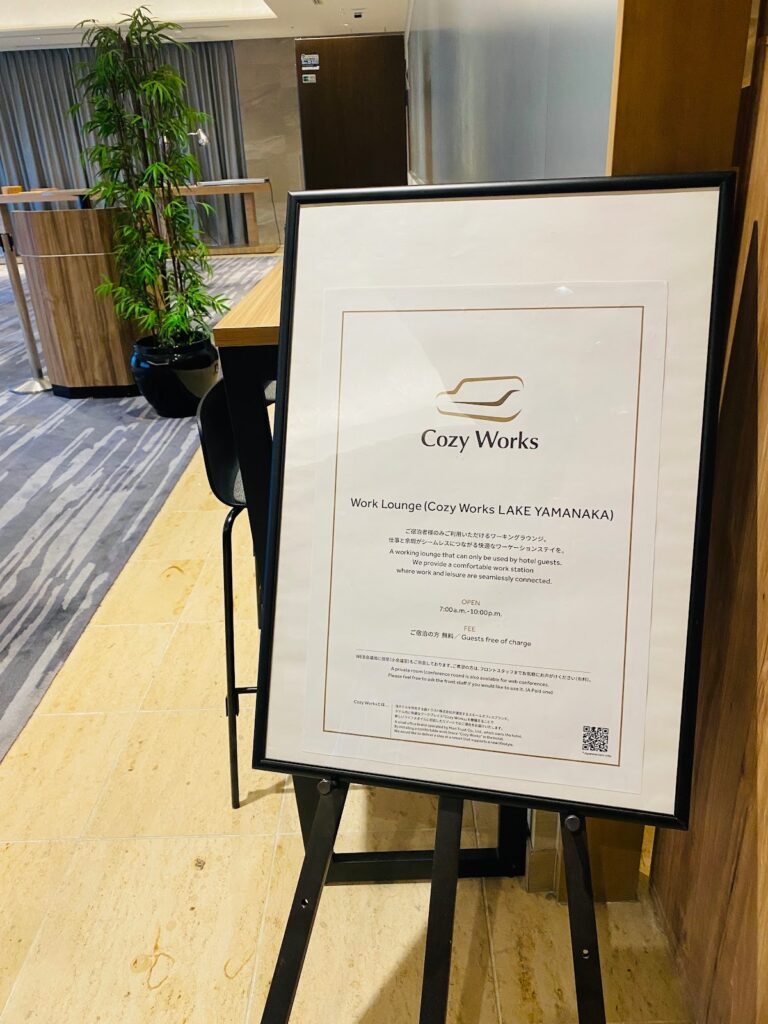 1階ロビー横には、宿泊者なら誰でも使えるテレワークスペース「Cozy Works」があります。