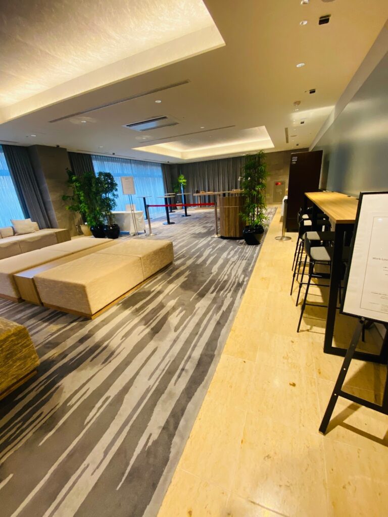 奥のスペースは夕方にはステータスメンバー向けのスペースになりますが、ステータスがなくても肩身の狭い思いをすることは一切ありませんでした。