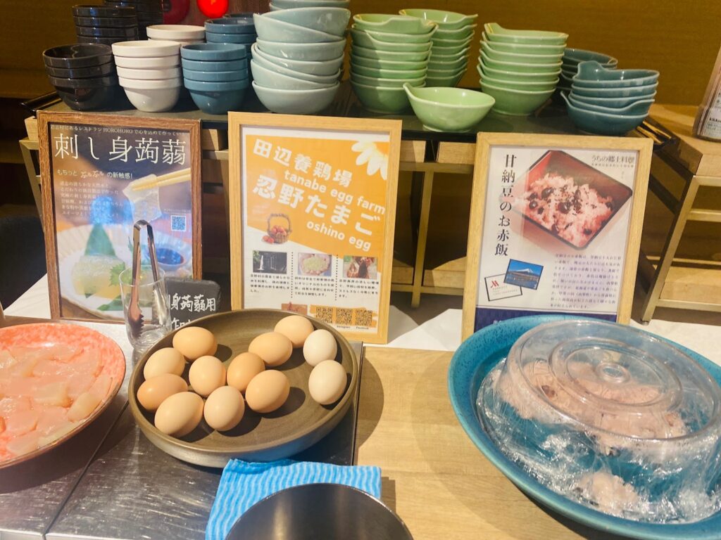 朝食ビュッフェは王道メニューから、地元の食材まで豊富なラインナップでした。
