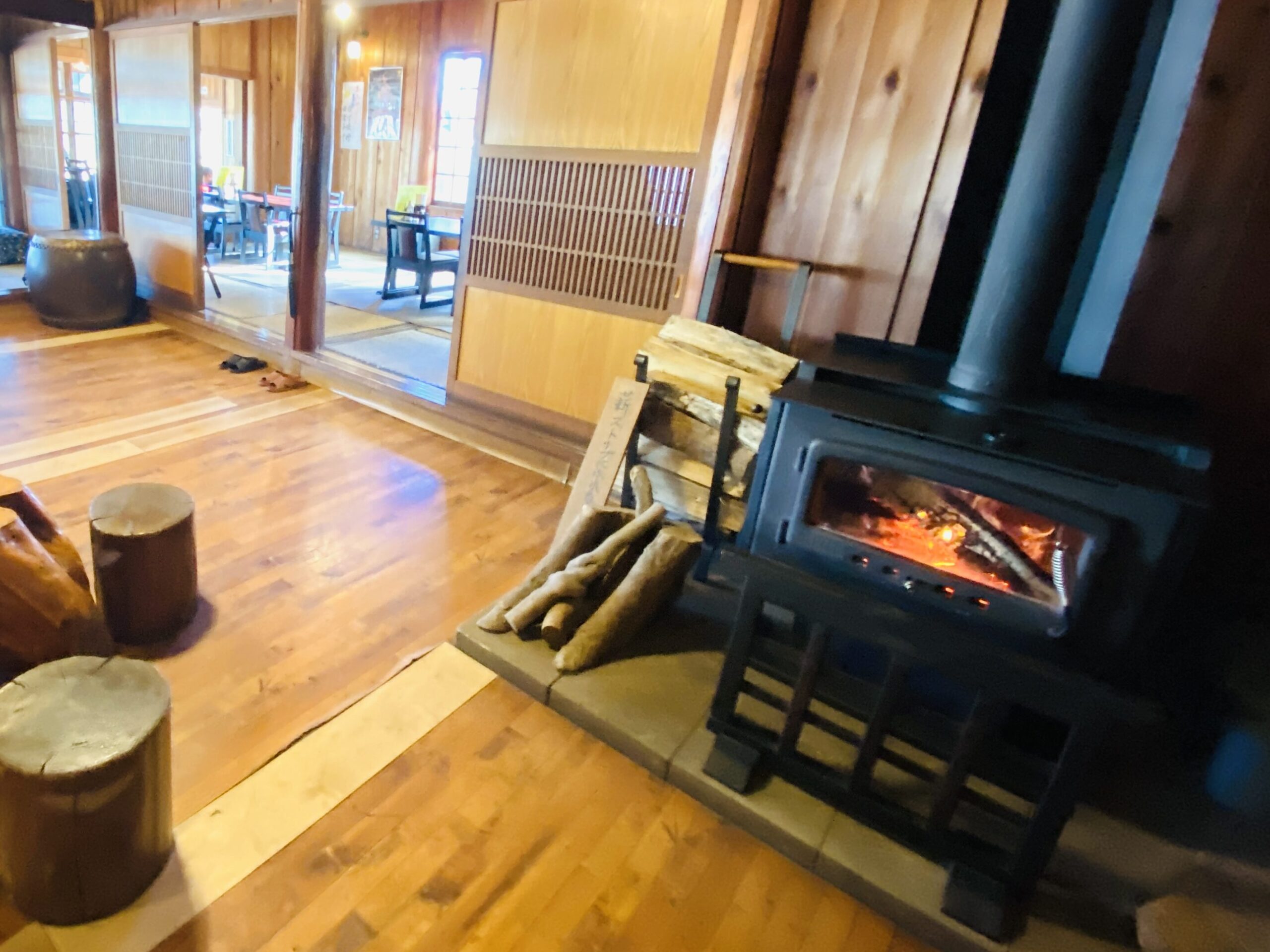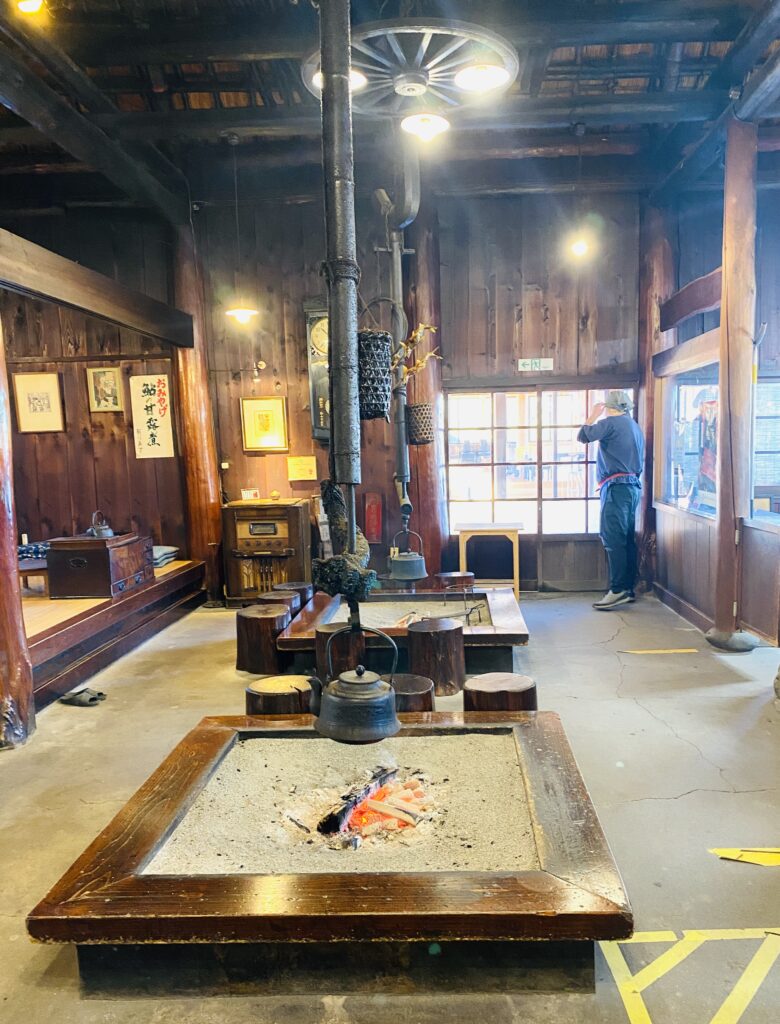 広い店内には、いくつもの囲炉裏や薪ストーブが置かれており、その火力と存在感に圧倒されます。