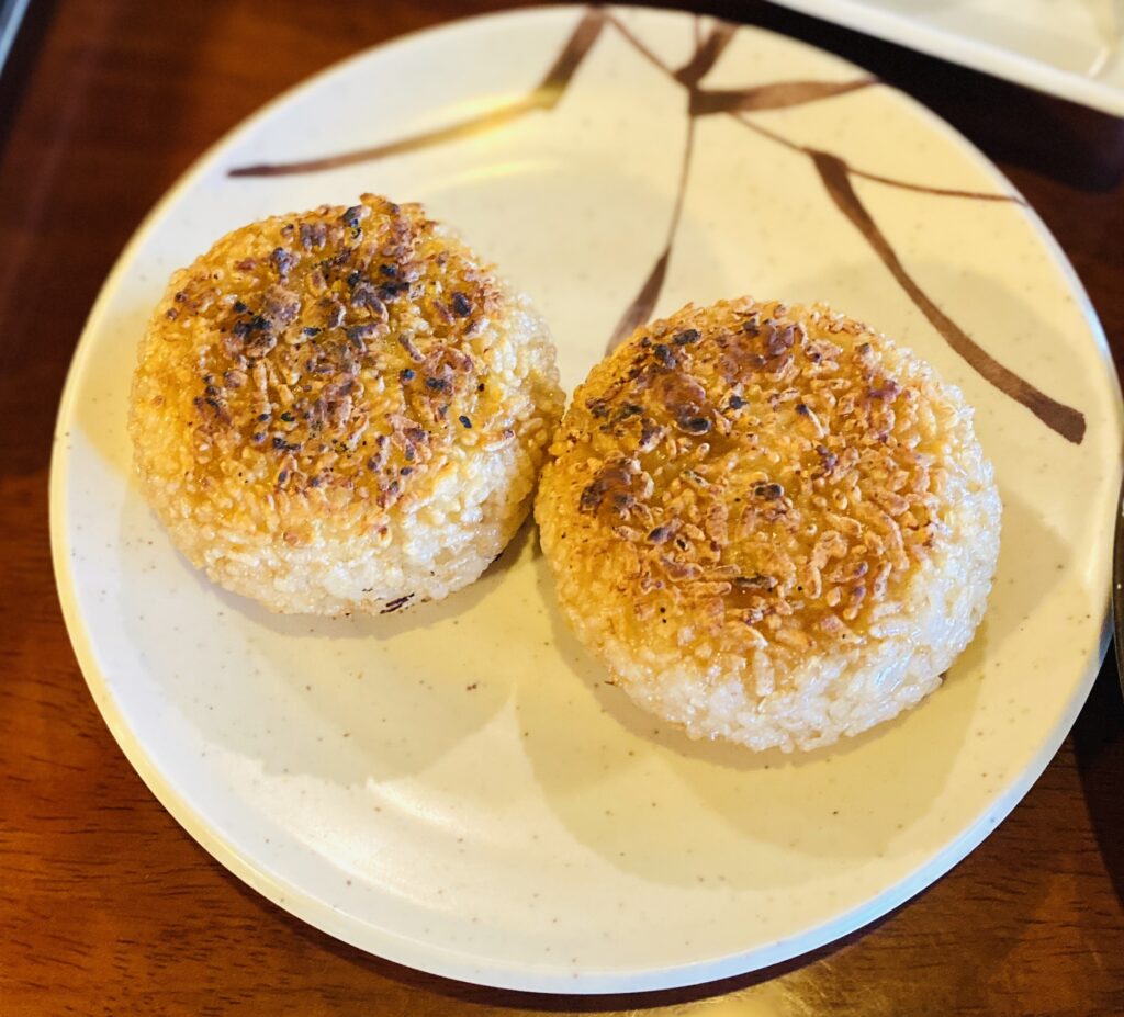 炭火で焼いた焼きおにぎりも外側はサクサクで、炭火特有の風味も香ばしく絶品でした。