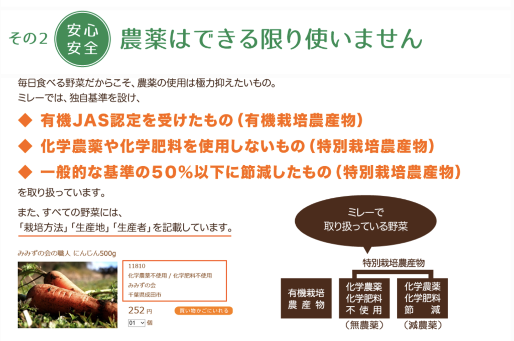 - 「おまけ」で誤魔化さない: 加工品で品数を増やすのではなく、主役の「泥付き野菜」や「鮮度」で勝負している。JAS認定や特別栽培農産物が中心。