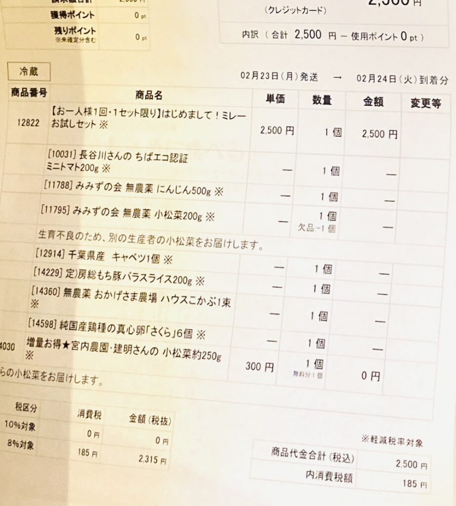 食材宅配サービス「ミレー」のお試しセットを注文してみたよ!