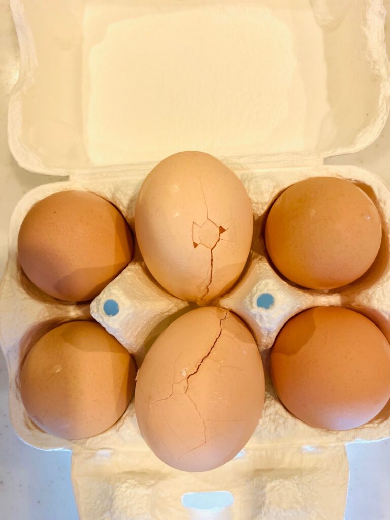 ここで一つ、正直にお伝えしなければならないことが。 セットに入っていた純国産鶏種の真心卵「さくら」(6個)ですが、実は届いた時に6個中3個が割れてしまっていたんです……。