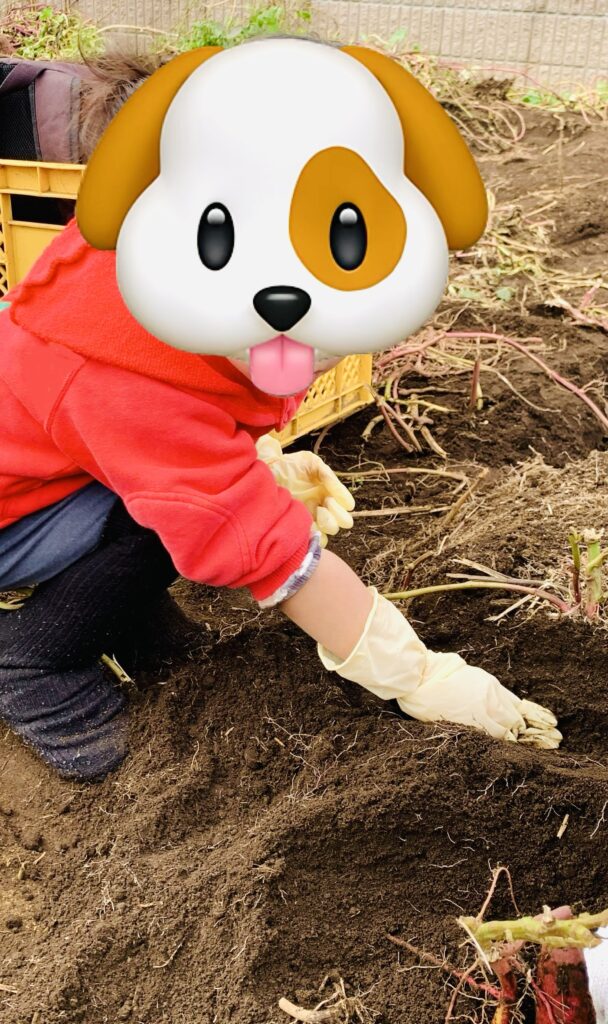 - まず手で土を掘り、お芋を傷つけないように注意。
