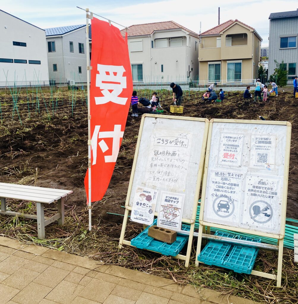 住宅街の一角に突如畑が出現し、芋掘り会場となっています。