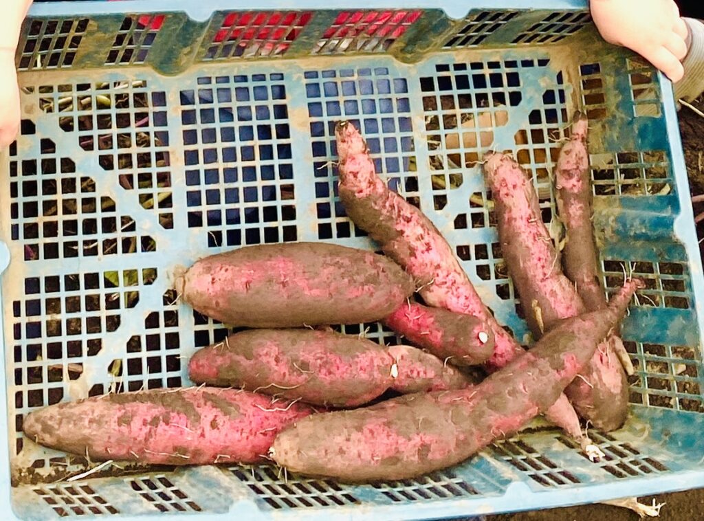 さつまいもの頭はそこまで深く埋まっていないのですぐに見つけることはできますが、先端は結構深くまで潜っているので掘り出すのは意外と重労働。