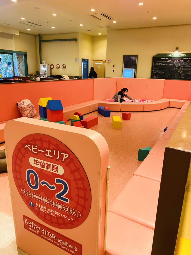 屋外で遊び疲れたら、室内遊び場へ。ここは30分の入れ替え制で、ベビールームも完備されています。