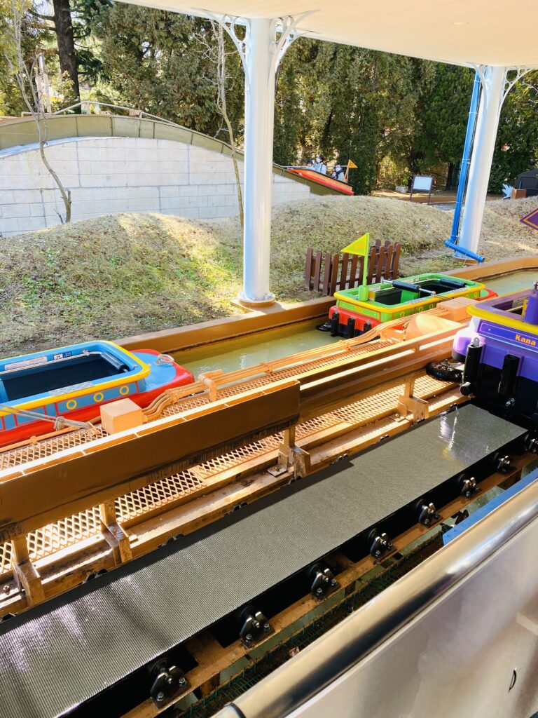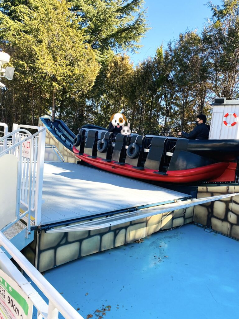 ボートで川を流れるアトラクション。年齢・身長制限はなく、0歳の次女も含めて家族4人で乗れました!途中で勢いよく下って川にスプラッシュする部分があり、一瞬の浮遊感が。