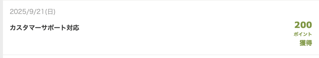 問い合わせをした2日後にはMy Pageのポイント履歴に反映されていました。
