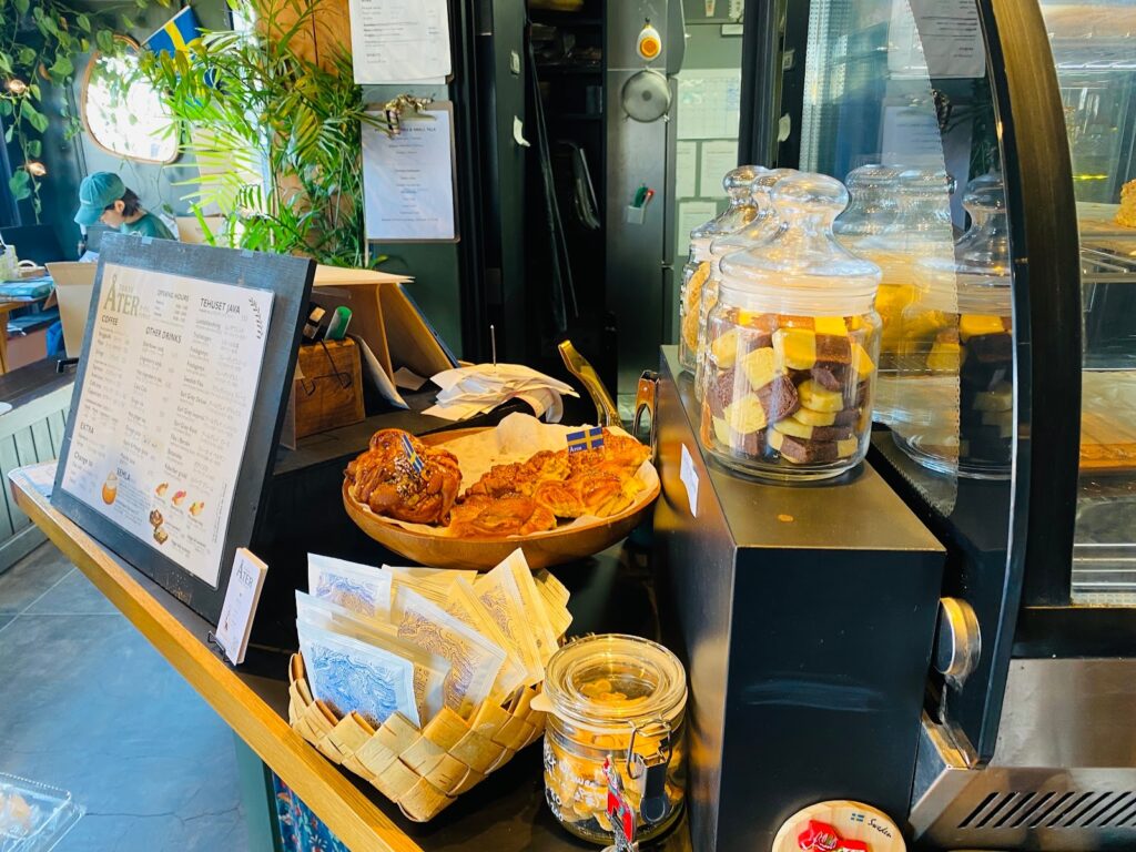 店内に入ると、一般的なカフェとは一味違う、スウェーデン特有のフードがずらり。