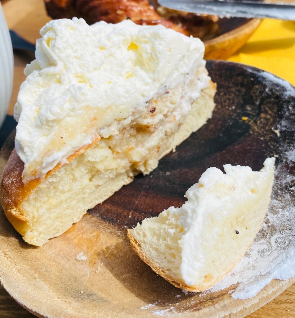 カルダモン入りのパンにアーモンドペーストと生クリームがたっぷり!シュークリームや一般的なクリームパンとは全く別物で、しっとりした生地が最高に美味しかったです。