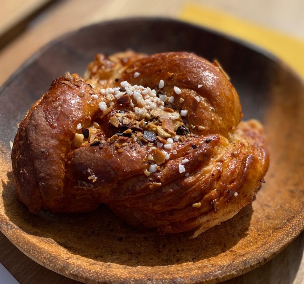 人気商品のシナモンロール。サクサクの生地と香ばしいナッツの相性が抜群で人気というのも納得でした!