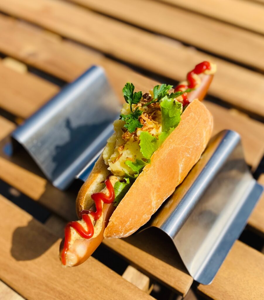 本格的なマッシュポテトが乗ったホットドッグ。ボリュームは軽めですが、ヨーロッパの味を感じられます。