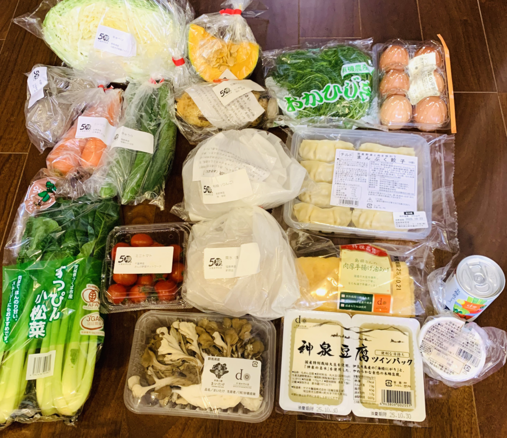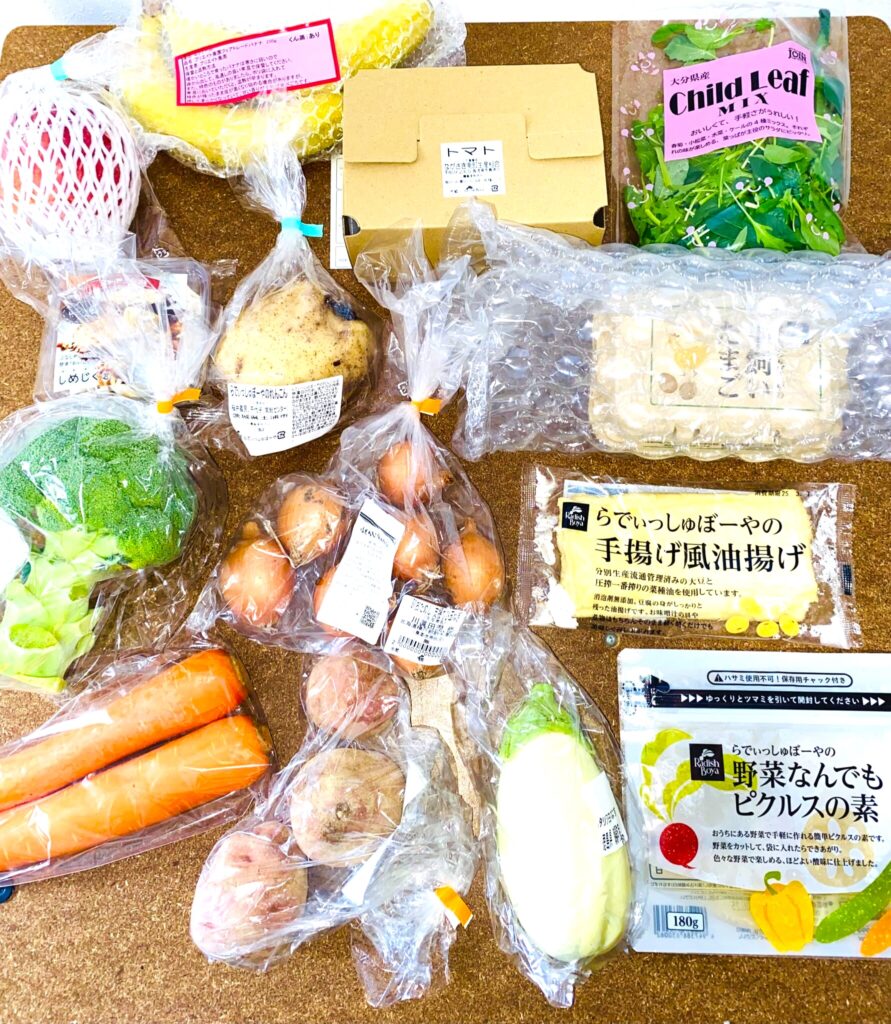 - 野菜や加工品が中心で、ミールキットなどは入っていない