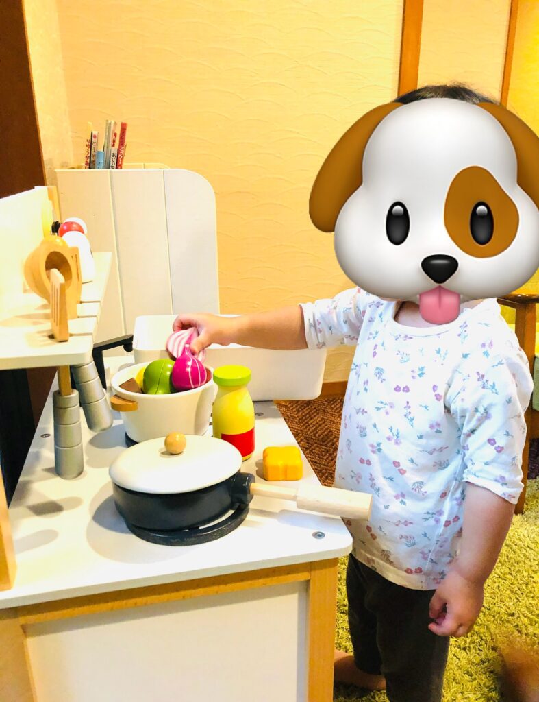 娘は本格的なキッチンのおもちゃでしばらく遊んでいました。